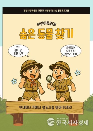 한국시사경제 권충언 기자 | 김천시시설관리공단(이사장 김재광)이 운영하는 김천시립박물관은 휴관이 종료되는 오는 12월 25일부터 상설전시실에서 어린이 관람객을 위한 체험형 전시 활동프로그램 '어린이특공대! 숨은 동물 찾기'를 운영한다.