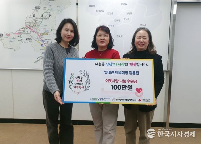 한국시사경제 경기북부취재본부 | 남양주시는 지난 19일 김윤원 별내면 체육회장이 지역 내 취약 가구 지원을 위해 이웃사랑 성금 100만 원을 별내면 지역사회보장협의체에 기탁했다고 22일 밝혔다.