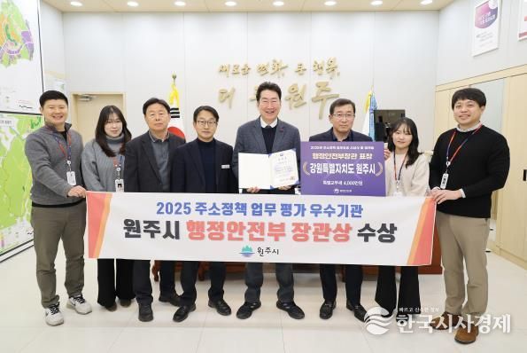 한국시사경제 권충언 기자 | 원주시는 최근 행정안전부가 주관한 ‘2025 주소정책 성과 공유 워크숍’에서 주소정책 업무 평가 우수 기관으로 선정돼, 행정안전부장관 표창을 수상하고 특별교부세 4천만 원을 확보했다.