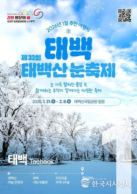 한국시사경제 권충언 기자 | 강원특별자치도와 강원관광재단은 ‘2026 강원 방문의 해’ 1월 추천 여행지로 태백시와 홍천군을 선정하여 대대적인 홍보마케팅을 추진한다고 밝혔다.