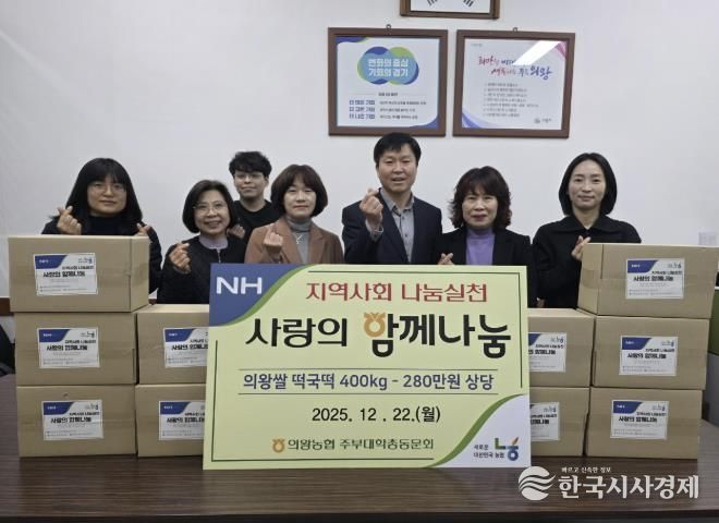 한국시사경제 권충현 기자 | 의왕농협 주부대학총동문회는 12월 22일, 회원들의 뜻을 모아 떡국떡 400kg(280만원 상당)을 부곡동주민센터에 기탁하며 어려운 이웃을 위한 나눔을 실천했다.