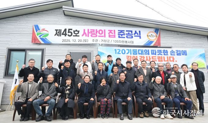 한국시사경제 문화팀 | 거창군 120자원봉사대(회장 성기환)는 지난 20일, 가조면 장기리 신천마을에서 '제45호 사랑의 집' 준공식을 열고, 주거 취약계층을 위한 나눔 활동을 실천했다.