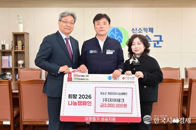 한국시사경제 이정이 기자 | 청송군은 지난 22일 대구시에 소재한 하수도 기술진단 및 환경기술전문업체 ㈜지이테크가 이웃돕기 성금 300만 원을 기탁했다고 밝혔다.