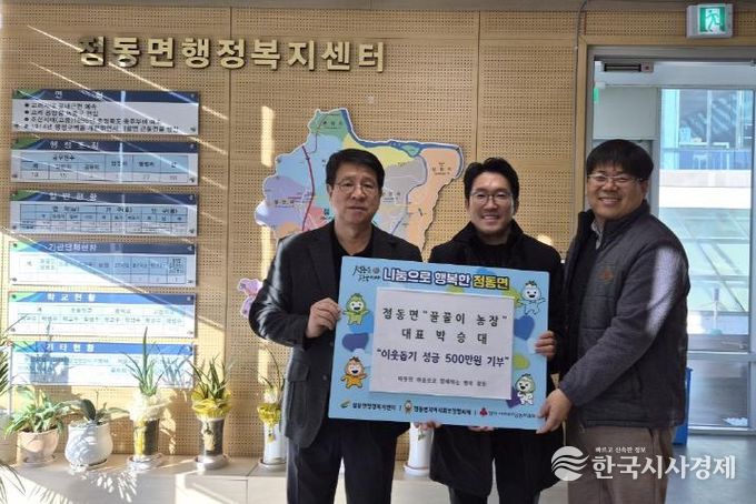 한국시사경제 기동취재팀 | 점동면 관내 꿀꿀이 농장 박승대 대표가 지난 12월 22일, 연말을 맞아 이웃사랑 성금 500만원을 경기사회복지공동모금회를 통해 점동면 지정기탁으로 점동면행정복지센터에 전달하며 지역사회에 따뜻한 감동을 전했다.