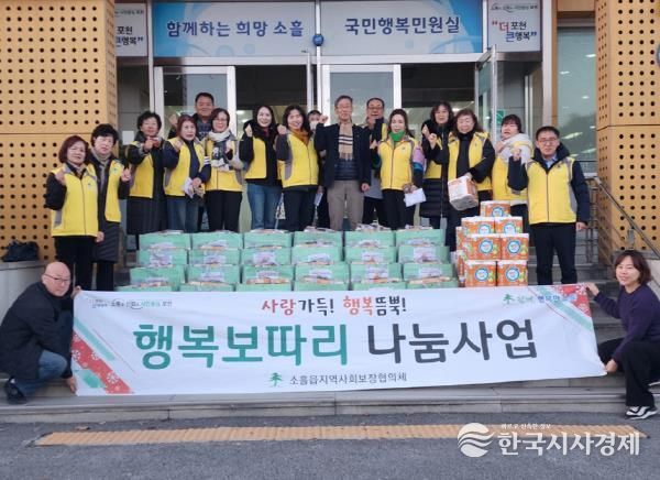 한국시사경제 경기북부취재본부 | 포천시 소흘읍 행정복지센터는 지난 22일 소흘읍지역사회보장협의체가 1인 가구 어르신 결연세대 등 저소득 38가구를 대상으로 ‘행복보따리 나눔사업’을 추진했다고 밝혔다.
