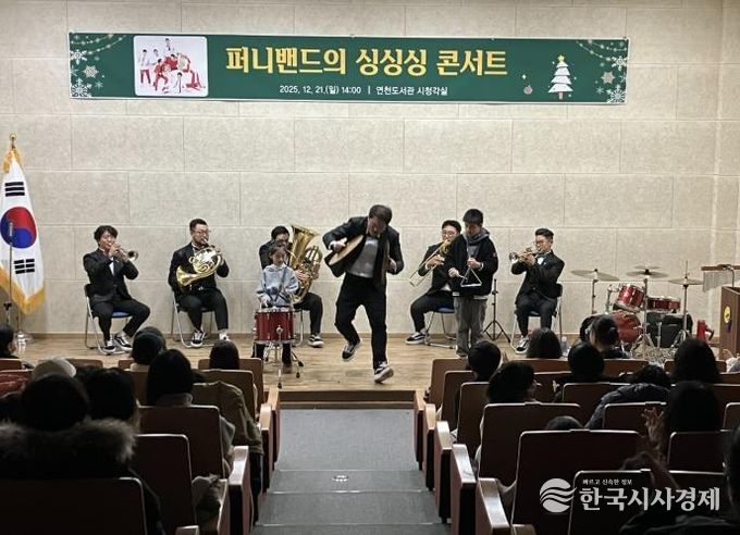 한국시사경제 문화팀 | 연천도서관은 지난 21일 오후 2시 '퍼니밴드 싱싱싱 콘서트'를 성공적으로 개최해 많은 연천군민들에게 연말의 특별한 문화 향유 기회를 제공했다. 이날 공연은 수많은 군민들이 찾아와 유쾌하고 열정적인 분위기 속에서 진행됐다.