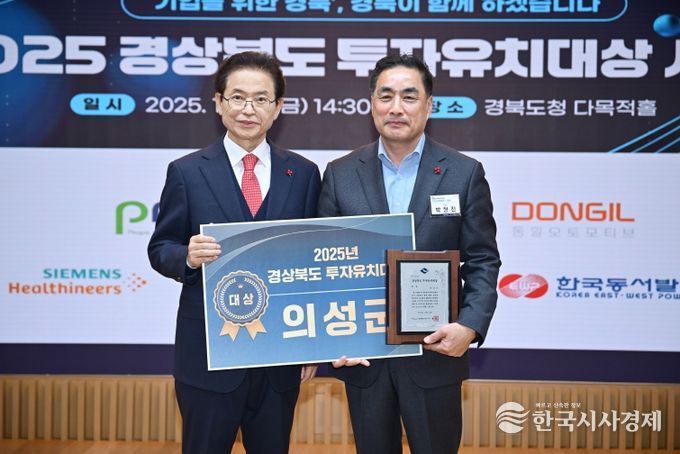 한국시사경제 이정이 기자 | 의성군은 지난 19일 경북도청에서 열린 ‘2025년 경상북도 투자유치대상’ 시상식에서 투자유치 활성화 성과를 인정받아 3년 연속 대상을 수상했다고 밝혔다.