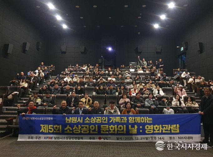 한국시사경제 전북취재본부 | 남원시소상공인연합회(회장 강상남)는 지난 21일 NH시네마에서 소상공인과 가족들을 초청해 영화 관람 행사를 열고 ‘소상공인 문화의 날’을 기념했다.
