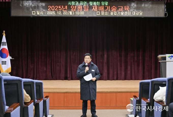 한국시사경제 기동취재팀 | 고품질 양평밀 생산을 위한 2025년 양평밀 재배기술 교육이 지난 22일 오전 10시부터 12시까지 양평군농업기술센터에서 개최됐다.