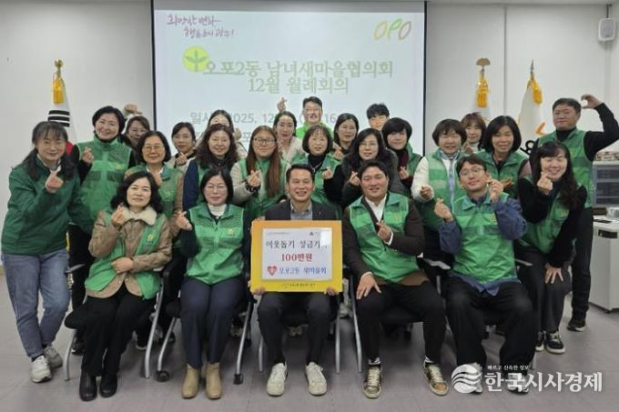 이에 대해 박종덕 동장은 “지역사회를 위해 따뜻한 나눔을 실천해 주신 오포2동 새마을회에 감사드린다”며 “기탁된 성금은 지역 내 취약계층을 위해 투명하고 소중하게 사용하겠다”고 밝혔다.