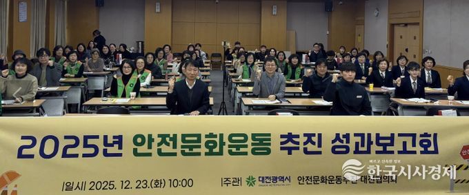 한국시사경제 대전취재본부 | 대전시는 23일 대전시청 세미나실에서 안전문화운동추진 대전협의회 소속 기관 및 단체 관계자 100여 명이 참석한 가운데 2025 안전문화운동 추진 성과보고회를 개최했다.