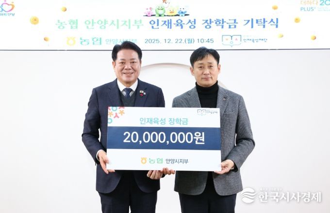 한국시사경제 경기취재본부 | 안양시 인재육성재단이 지난 22일 농협 안양시지부로부터 인재육성을 위한 장학금 2천만 원을 기탁받았다고 23일 밝혔다.