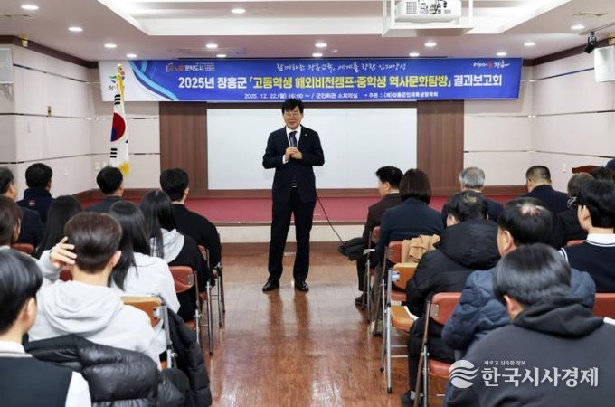 한국시사경제 전남취재본부 | 장흥인재육성장학가 지난 22일 군민회관에서 중·고등학생 해외비전캠프 및 역사문화탐방 결과 보고회를 개최했다.