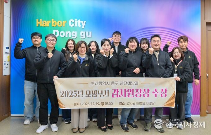 한국시사경제 부산취재본부 | 부산 동구는 안전예방과가 감사원으로부터 모범부서로 선정돼 지난 19일 감사원에서 열린 2025년도 모범사례 포상행사에서 감사원장 표창을 받았다고 밝혔다.
