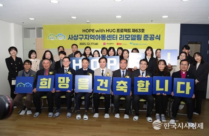 한국시사경제 김숙영 기자 | 부산 사상구는 지난 17일, 부산광역시·부산국제건축제조직위원회·주택도시보증공사(HUG)가 공동 주관하는 2025년 ‘HOPE with HUG’ 프로젝트에 선정된 사상구지역아동센터의 노후 시설 리모델링 공사를 완료하고 준공식을 개최했다고 밝혔다.