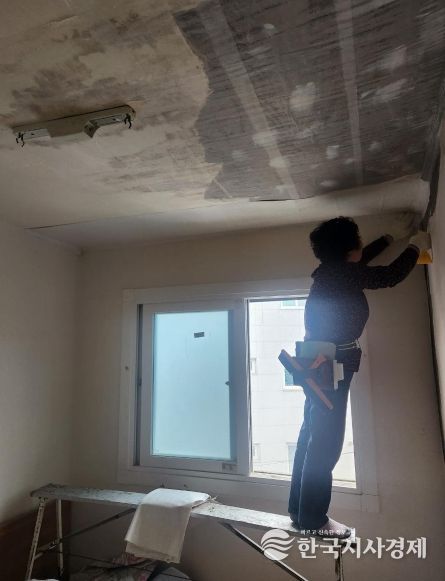 한국시사경제 기동취재팀 | 관고동 소재 다인인테리어 김연식 대표는 지난 19일 관내 저소득층 가구를 대상으로 주거환경 개선을 위한 도배 지원을 진행했다.