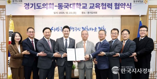 한국시사경제 윤광희 기자 | 경기도의회는 23일 오전 의장 접견실에서 동국대학교와 교육협력 및 학술교류를 위한 업무협약(MOU)을 체결했다.