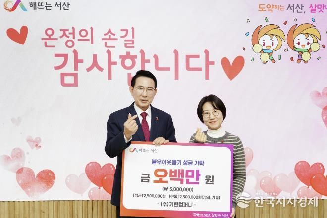시는 이날 시청 시장실에서 이완섭 서산시장, 송주현 ㈜기린컴퍼니 대표가 참석한 가운데 기탁식을 개최했다.