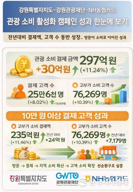 강원특별자치도·강원관광재단–NH농협카드 관광 소비 활성화 캠페인, 전년 대비 결제액·고객수 모두 두 자릿수 성장