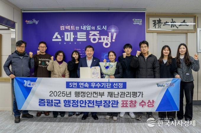 군 관계자는 “5년 연속 최우수기관 선정은 군민의 안전을 최우선 가치로 두고 전 부서가 함께 노력해 온 결과”라며 “앞으로도 선제적 재난관리와 현장 중심 대응을 통해 군민이 안심하고 생활할 수 있는 안전한 증평을 만들어 가겠다”고 밝혔다.