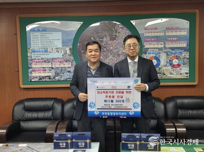 한국시사경제 경기북부취재본부 | 포천동 행정복지센터는 지난 23일 매일유업 진암사회복지재단이 영양식 3,000개를 포천시니어클럽에 후원하고, 이 가운데 300개를 포천동 행정복지센터에 기탁했다고 밝혔다.