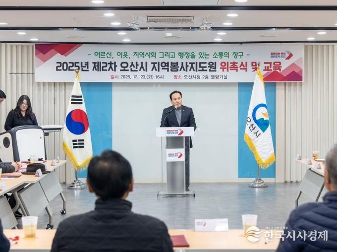 한국시사경제 권충현 기자 | 오산시는 지난 23일 오산시청 물향기실에서 신규 경로당 회장을 대상으로 한 '2025년 지역봉사지도원 위촉식'을 개최했다고 밝혔다.