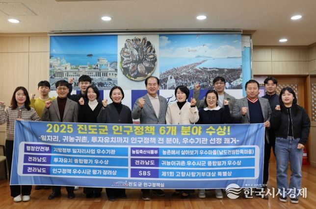한국시사경제 경제팀 | 진도군이 2025년 한 해 동안 인구정책 6개 분야에서 잇따라 우수기관으로 선정되며, 인구정책 추진 성과를 대외적으로 인정받았다.
