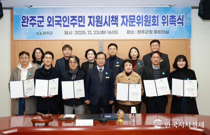 한국시사경제 김숙영 기자 | 완주군이 외국인 주민 지원 정책의 체계적 추진을 위해 ‘외국인주민 지원시책 자문위원회’를 구성하고, 지난 23일 중회의실에서 위촉식을 열었다.
