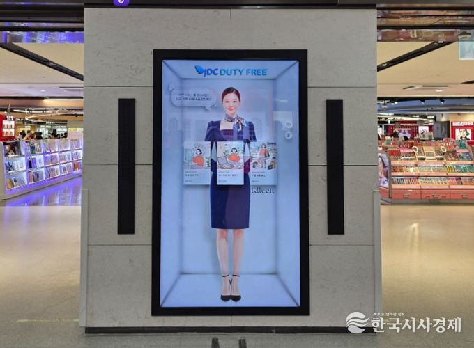 JDC면세점은 국내 면세점 업계 최초로 최신형 무안경 3D 디스플레이와 양방향 소통형 AI 가상 모델 제이디(J-Di)′를 결합한 차세대 스마트 안내 시스템을 전격 도입했다고 24일 밝혔다.