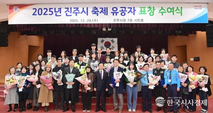 한국시사경제 윤광희 기자 | 진주시는 24일 시청에서 올해 축제의 성공적인 개최에 기여한 유공자들의 노고와 헌신을 기리기 위해 ‘2025년 진주시 축제 유공 표창 수여식’을 개최했다.