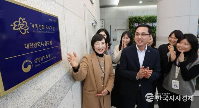 한국시사경제 대전취재본부 | 대전 동구는 성평등가족부가 주관하는 ‘가족친화우수기관’ 재인증을 통과함에 따라, 청사 내 현판 교체식을 진행했다고 24일 밝혔다.