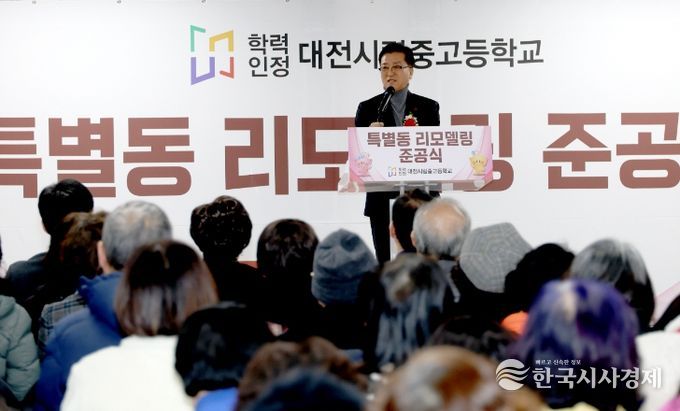 한국시사경제 김태훈 기자 | 대전시의회 조원휘 의장은 24일 대전시립중고등학교 특별동 리모델링 공사 준공식에 참석해 준공을 축하하며, 배움을 향한 만학도들의 꿈과 용기를 응원했다.