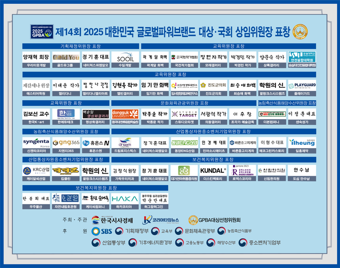 2025년 하반기 14회를 맞이한 글로벌파워브랜드 대상(GPBA)은 국내 브랜드 시상 제도 가운데서도 절차의 엄정성과 공신력 측면에서 높은 평가를 받을 만한 행사로 자리매김했다. 한국시사경제 • 코리아타임뉴스(윤광희 회장)가 주최하고 GPBA 대상선정위원회가 주관했으며, SBS • 기획재정부 • 교육부 • 문화체육관광부 • 농림축산식품부 • 산업통상부 • 기후에너지환경부 • 고용노동부 • 해양수산부 • 중소벤처기업부 등 주요 정부 부처가 후원에 참여함으로써 신뢰도를 한층 강화했다.