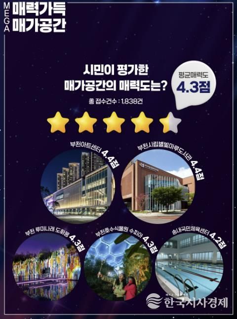 한국시사경제 경기취재본부 | 부천시는 시민이 직접 참여한 ‘MEGA(매가) 공간’ 매력도 조사 결과를 발표했다. 이번 공모는 공간에 대한 시민의 체감도와 이용 경험을 파악하고, 이를 바탕으로 향후 공간 운영과 정책 방향을 설정하기 위해 실시됐다.