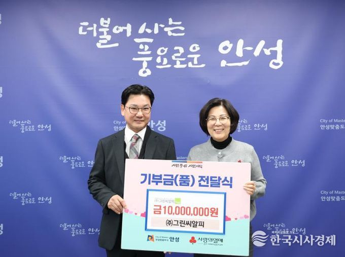 한국시사경제 경기취재본부 | 안성시는 지난 12월 24일, ㈜그린씨알피로부터 1,000만 원 기부금을 전달받았다고 밝혔다.