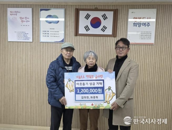한국시사경제 기동취재팀 | 금사면 생활개선회 최종희 회장이 배우자와 함께 지난 24일 여주시 금사면행정복지센터를 방문하여 이웃돕기 성금 120만원을 기탁했다.