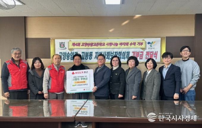 이날 학교장실에서 열린 전달식에는 고양송암고 학생들을 비롯해 정재도 고양송암고 교장, 차형수 고봉동장, 이종억 지역사회보장협의체 위원장 등이 참석해 감사의 뜻을 나눴다.