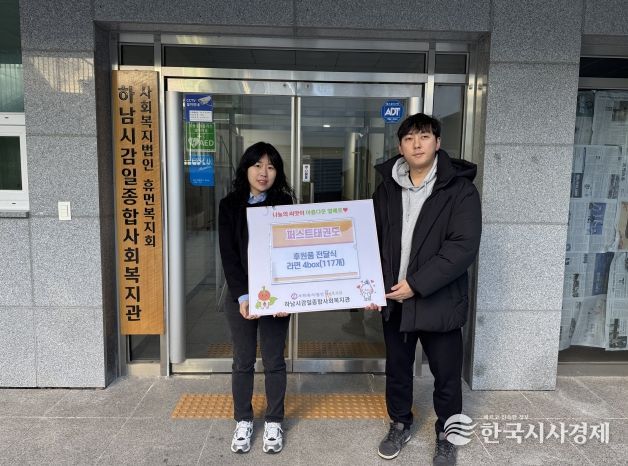 한국시사경제 기동취재팀 | 감일퍼스트태권도장(관장 이양성)은 지난 12월 26일 하남시감일종합사회복지관(사회복지법인 휴먼복지회 운영)에 ‘사랑의 라면트리’ 라면 117개를 전달했다.