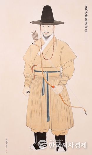 특히, 무과 중시(中試)에 급제하고 뛰어난 활솜씨를 가졌다는 의병장의 기록에 기반해 손에 활을 움켜쥔 채 화살통을 메고 있는 가로 90cm, 세로 160cm 입상 영정을 내놓았다.