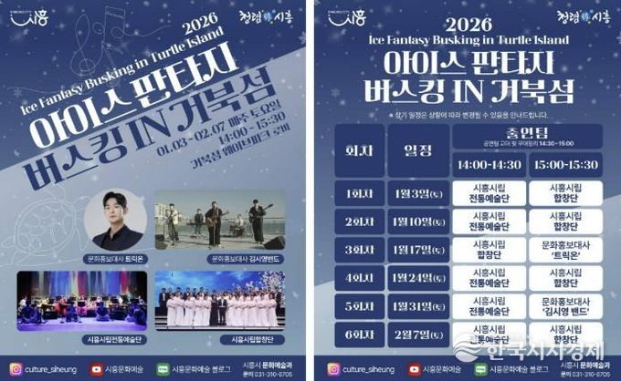한국시사경제 경기취재본부 | 시흥시는 지난 연말에 진행된 ‘2025 시흥 사운드 오브 윈터’의 열기를 잇는 후속 문화예술 프로그램으로, 겨울철 거북섬을 찾는 시민과 관광객에게 풍성한 즐길 거리를 제공하고자 ‘2026 아이스 판타지 버스킹 인 거북섬’을 운영한다.