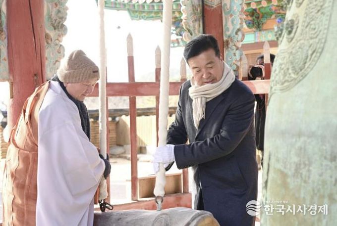 이어 수덕사 범종각에서 새해를 알리고 한 해 안녕을 기원하는 신년타종 행사에 참석했다.