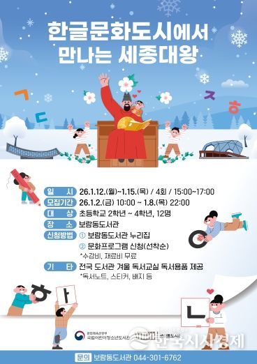 한국시사경제 세종취재분부 | 세종시립도서관이 오는 12일부터 16일까지 보람동도서관에서 초등학교 2∼4학년 학생을 대상으로 ‘2026년 전국 도서관 겨울 독서교실’을 운영한다.
