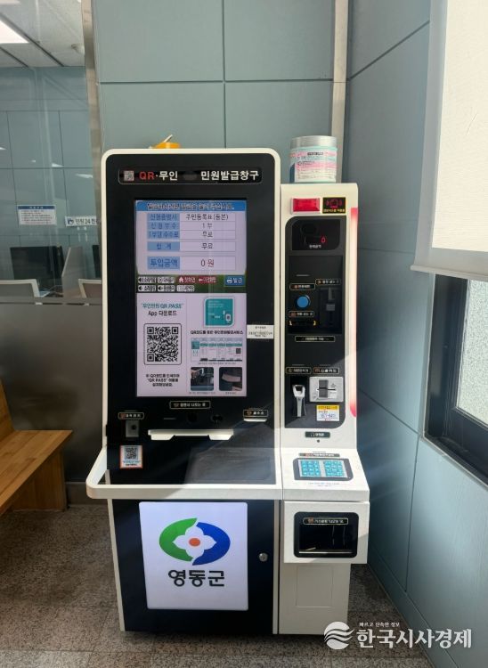한국시사경제 충북취재본부 | 충북 영동군이 무인민원발급기 수수료 전면 무료화를 시행하며, 군민 중심의 민원서비스 개선에 나섰다.