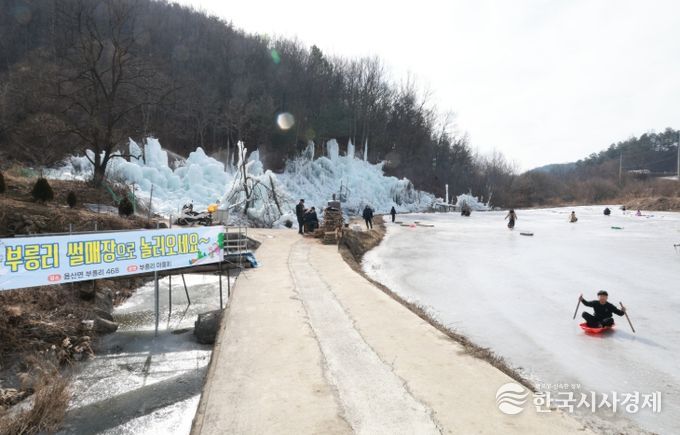 한국시사경제 충북취재본부 | 충북 영동군 용산면 부릉리 마을이 겨울철 무료 썰매장을 마련해 주민과 방문객들의 발길을 모으고 있다.