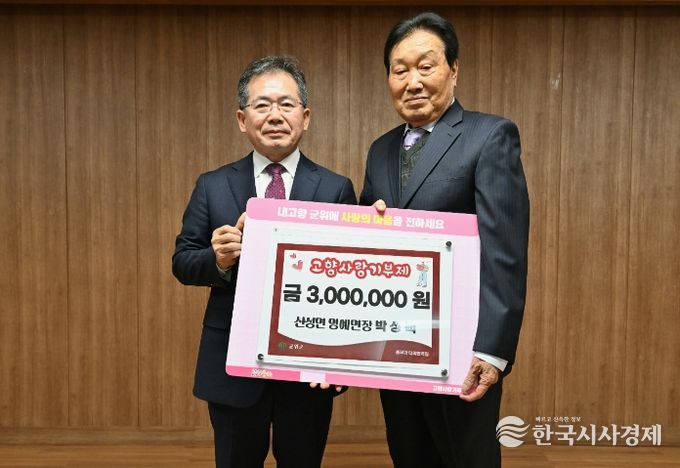 박 명예면장은 이날 위촉식 자리에서 고향 사랑의 마음을 담은 기부금 300만원을 전달해 현장을 더욱 훈훈하게 만들었다. 이는 명예면장이라는 직함을 넘어, 고향을 향한 변함없는 애정을 실천으로 직접 증명한 것이기에 주민들에게 더욱 깊은 울림을 주었다