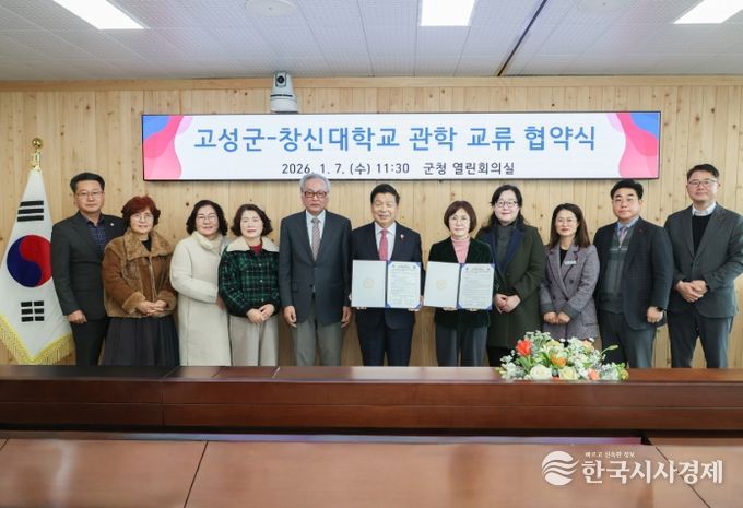한국시사경제 윤광희 기자 | 고성군은 1월 7일, 군청 본관 3층 열린회의실에서 창신대학교와 디카시를 중심으로 한 관학 교류 협력 협약을 체결했다.