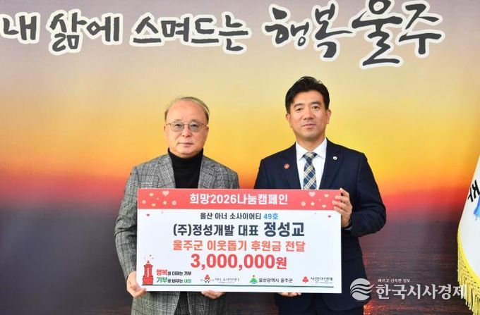 한국시사경제 울산취재본부 | ㈜정성개발이 12일 울주군에 지역 저소득세대를 위한 성금 300만원을 전달했다.