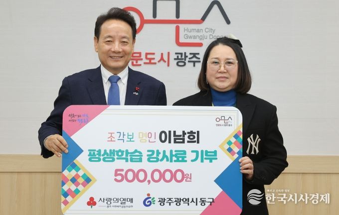 한국시사경제 광주취재본부 | 광주 동구는 평생학습관에서 조각보 포장 강사로 활동한 이남희 씨가 강사료 일부를 기부하며 지역사회에 따뜻한 나눔을 전했다고 밝혔다.
