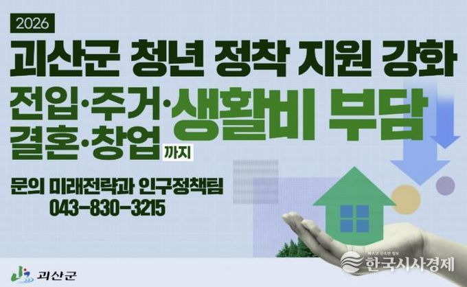 한국시사경제 충북취재본부 | 충북 괴산군은 청년층의 지역 정착을 지원하기 위해 전입 지원, 주거비 지원, 결혼·신혼부부 지원, 배움·동아리·창업 지원 등 생애 전환 단계별 맞춤형 청년정책을 본격 추진한다고 14일 밝혔다.