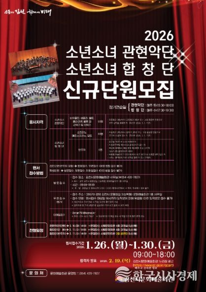 한국시사경제 노승선 기자 | 김천시 문화예술회관은 김천 문화예술의 미래를 이끌어 갈 시립예술단 신규단원을 모집한다.